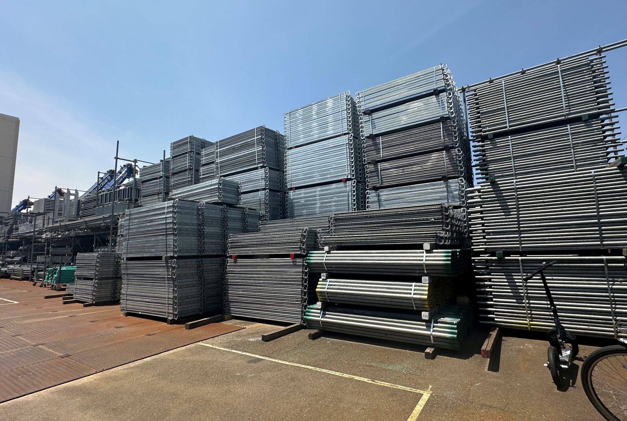 ①リース業:足場材や仮設資材を貸し出し、必要な現場へ供給しています。